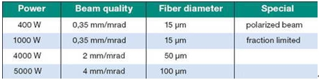 以下表格中的各種光纖激光可以用于工業加工發展的研究。